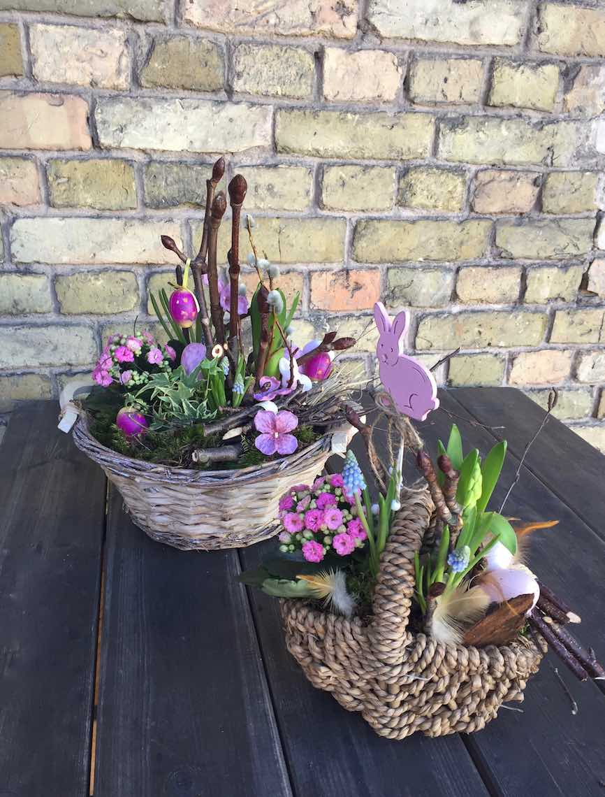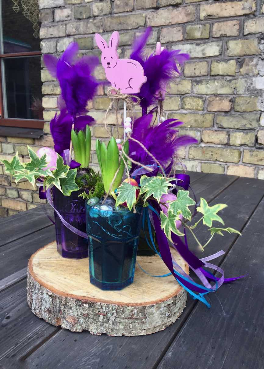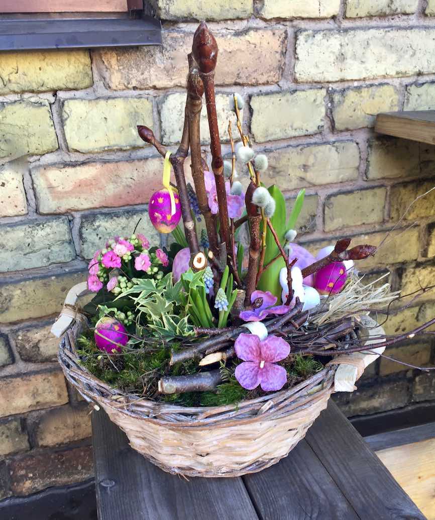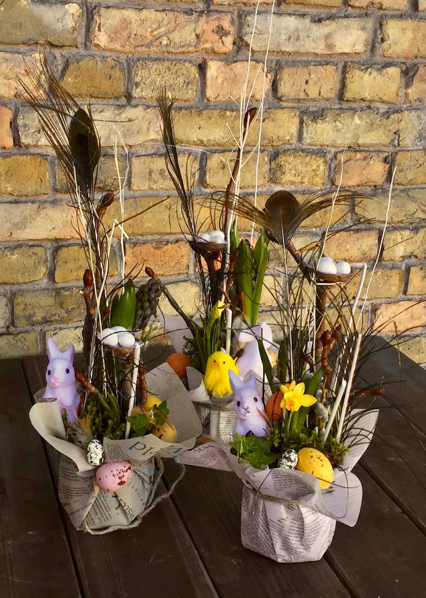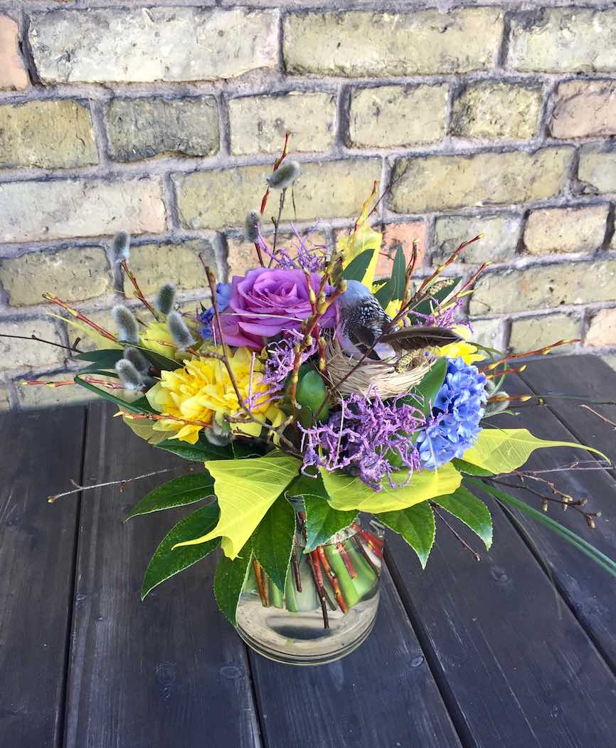 Ziedu kompozīcijas pie mums uzziedējušas grozos, glāzēs un podos. Priecīgi košās krāsās kas parādās un uzplaukst visapkārt. Saulaini dzeltenais, krokusu violetais, pūpolu pelēki maigais un rozā.