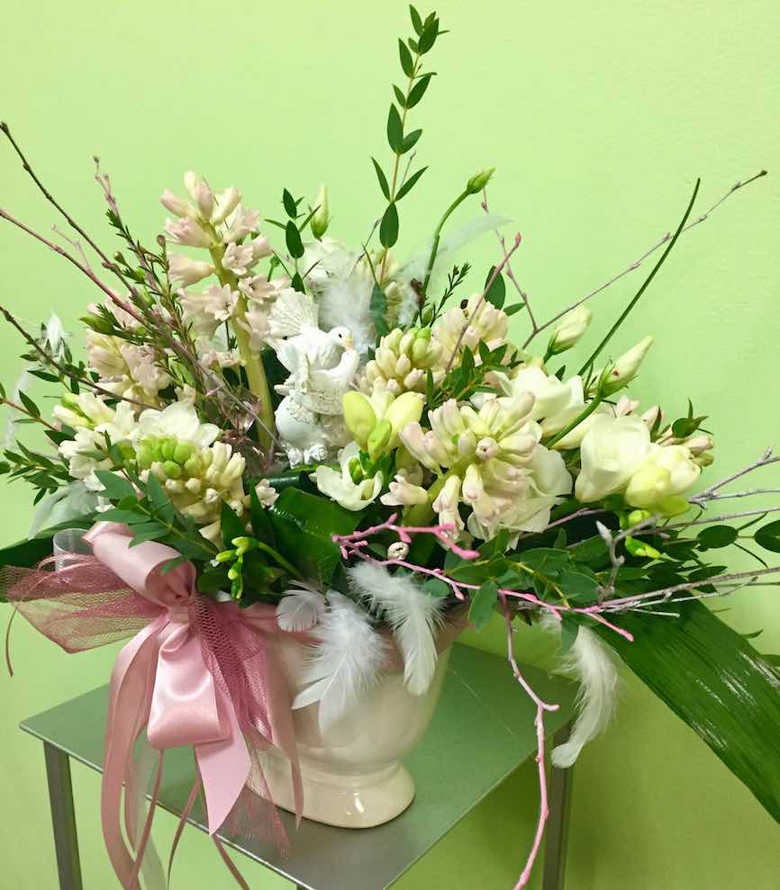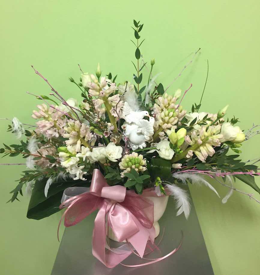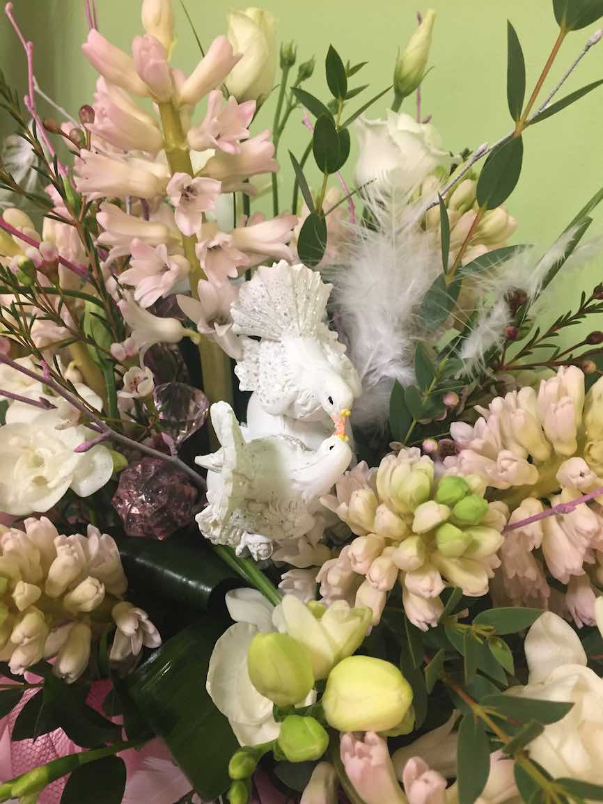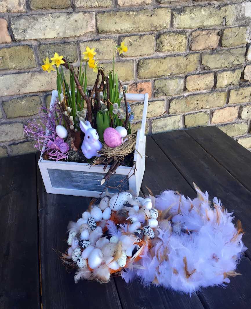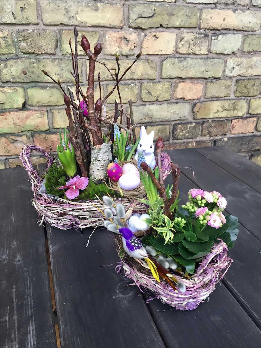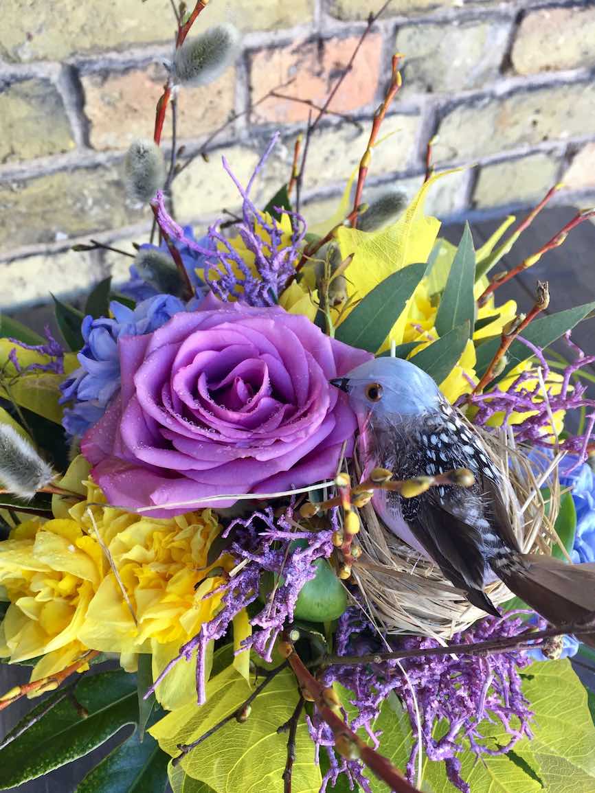 Ziedu kompozīcijas pie mums uzziedējušas grozos, glāzēs un podos. Priecīgi košās krāsās kas parādās un uzplaukst visapkārt. Saulaini dzeltenais, krokusu violetais, pūpolu pelēki maigais un rozā.